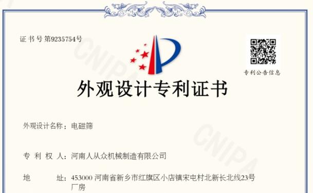 河南人從眾機械制造有限公司電磁篩專利技術
