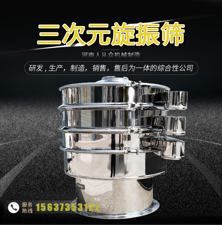粉末顆粒振動篩的運動軌跡是一條復雜的三維曲線。水平面上的投影是圓,在兩個垂直面上的投影是兩個相同的橢圓。通過調整振動電機上下端偏心塊的相對相位,可以改變物料在篩面上的運動軌跡,從而達到不同的篩分目的;適用于面粉、淀粉等粉狀物料和各種顆粒狀物料的篩分。