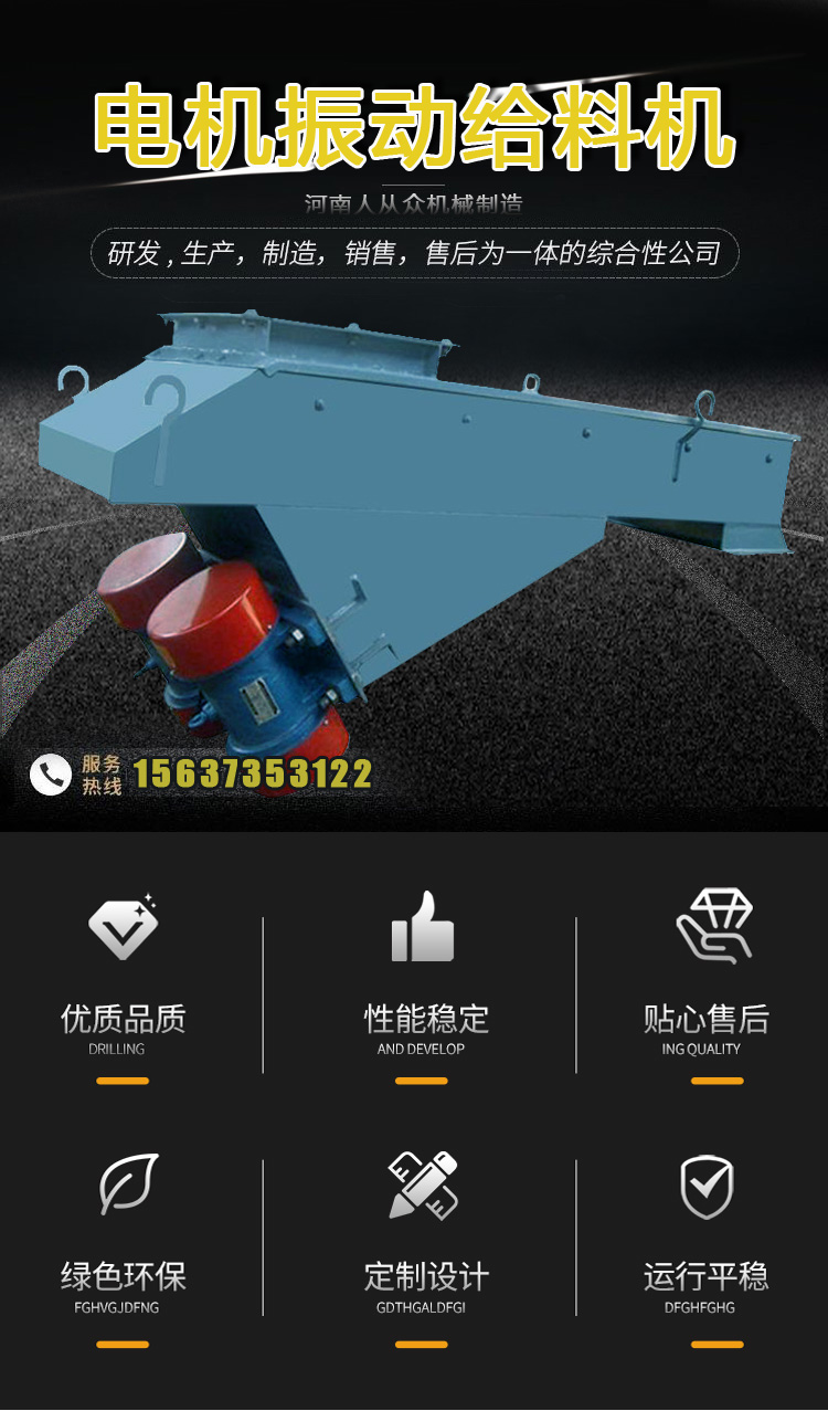 雙電機平板給料機給料比較均勻且連續(xù)性好,可隨時更改和控制流量;偏心塊為激振源,功耗低,調(diào)節(jié)性能好,無沖孔現(xiàn)象;如果使用封閉機身,可以防止環(huán)境污染,使用壽命長;