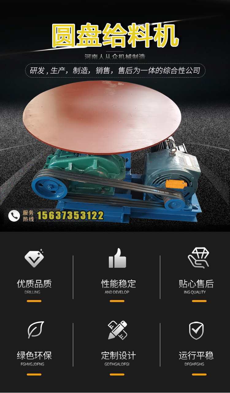 轉盤式定量送料機又叫盤式給礦機,圓盤給料機的進料口由接收套筒和接收套筒下方高度可調的調節套筒組成。物料從接收套筒掉落到調節套筒,然后從圓盤和調節套筒之間的間隙泄漏,并由刮板從圓盤上刮下。