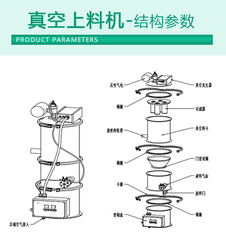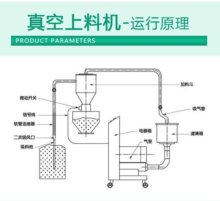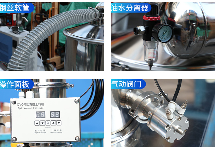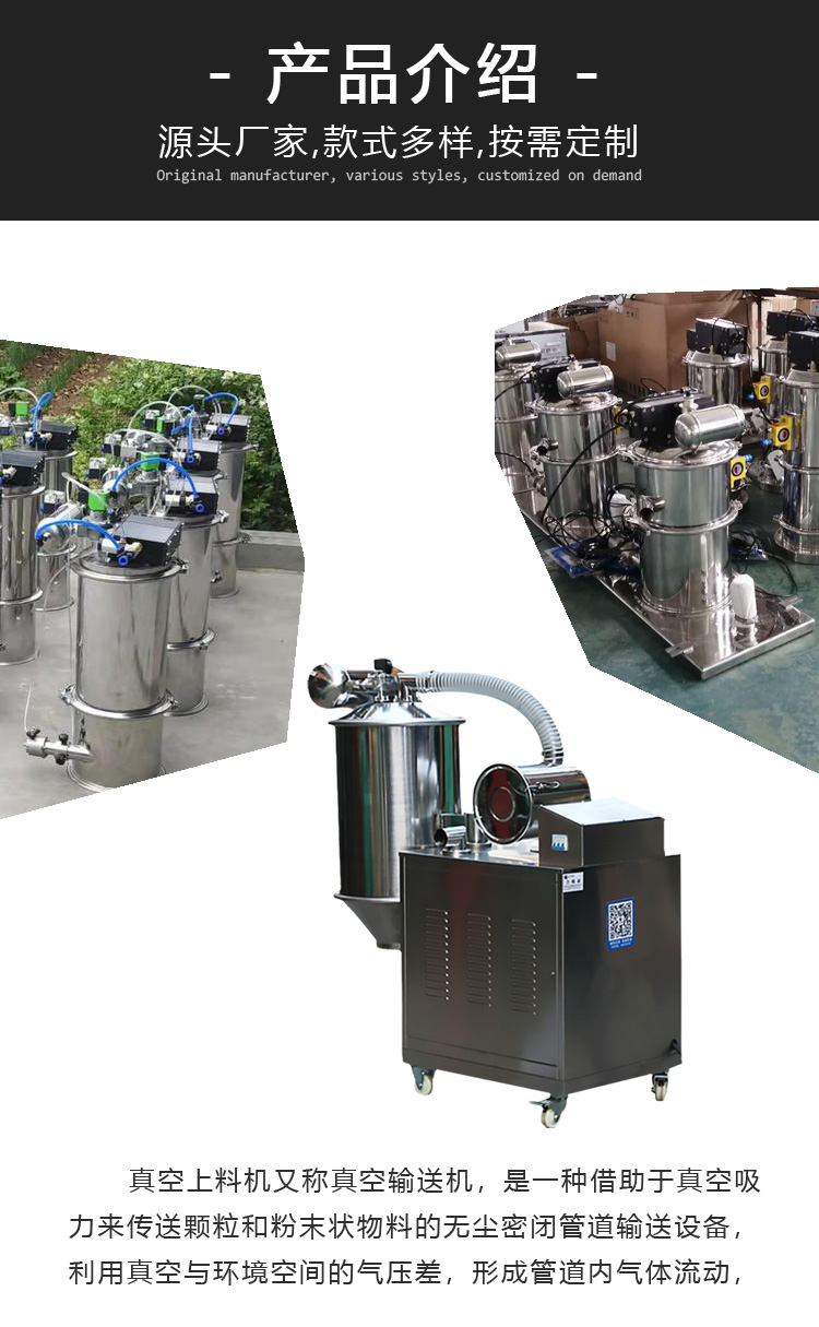 真空上料機又叫真空輸送機,利用壓力差在管道中形成氣流,驅動粉狀物料的運動,完成粉末的輸送。不受距離的限制,是大多數粉末材料的首選。